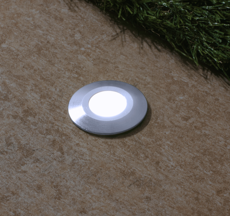 Faretto a LED segna passi ad incasso calpestabile per esterni con un fattore di impermeabilità di IP65.